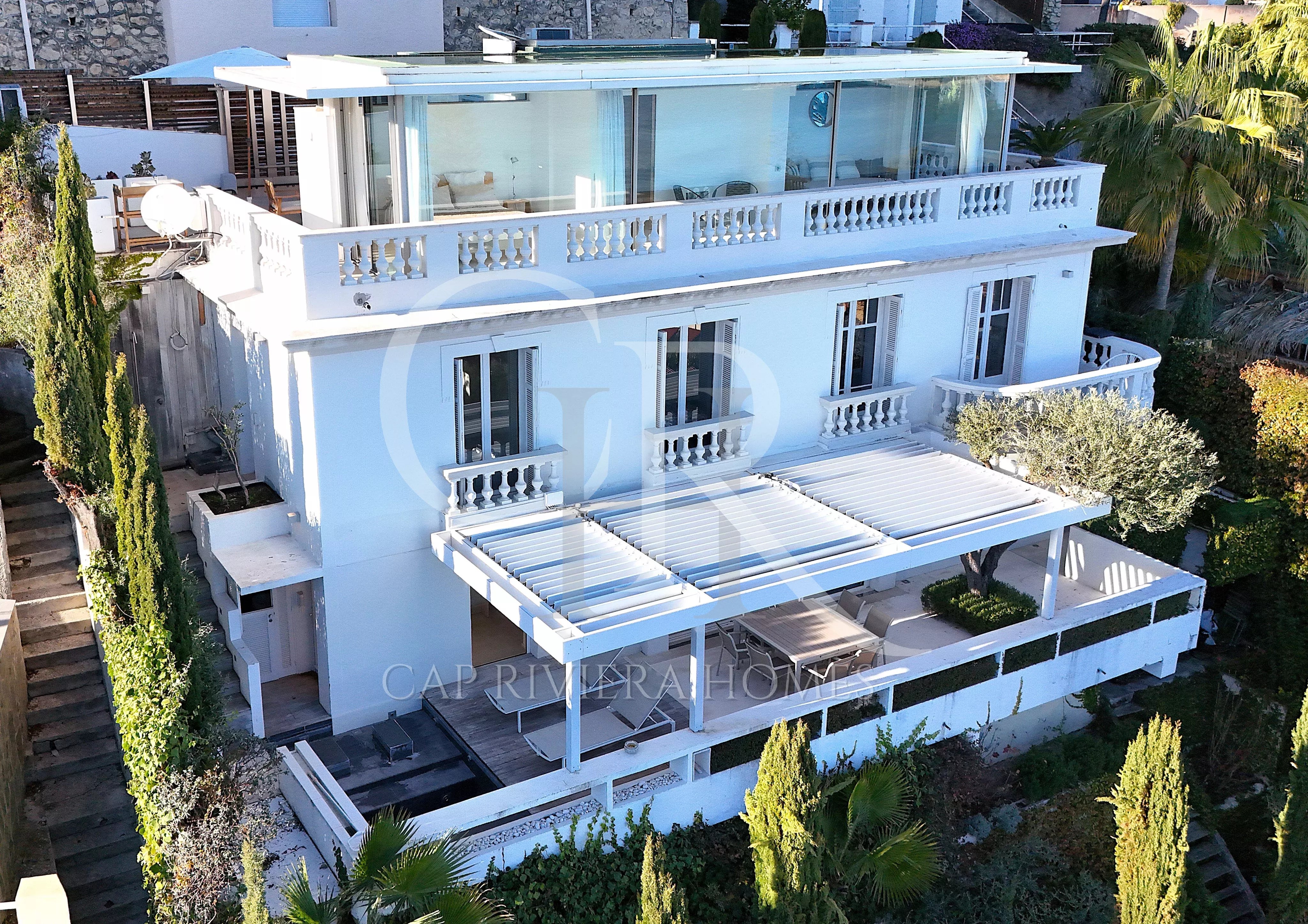 Magnifique maison de 150m2 comprenant 4 chambres, 3 salles de bains, une cuisine ouverte sur un vaste salon, une terrasse avec une petite piscine, un garage ainsi qu'un stationnement extérieur