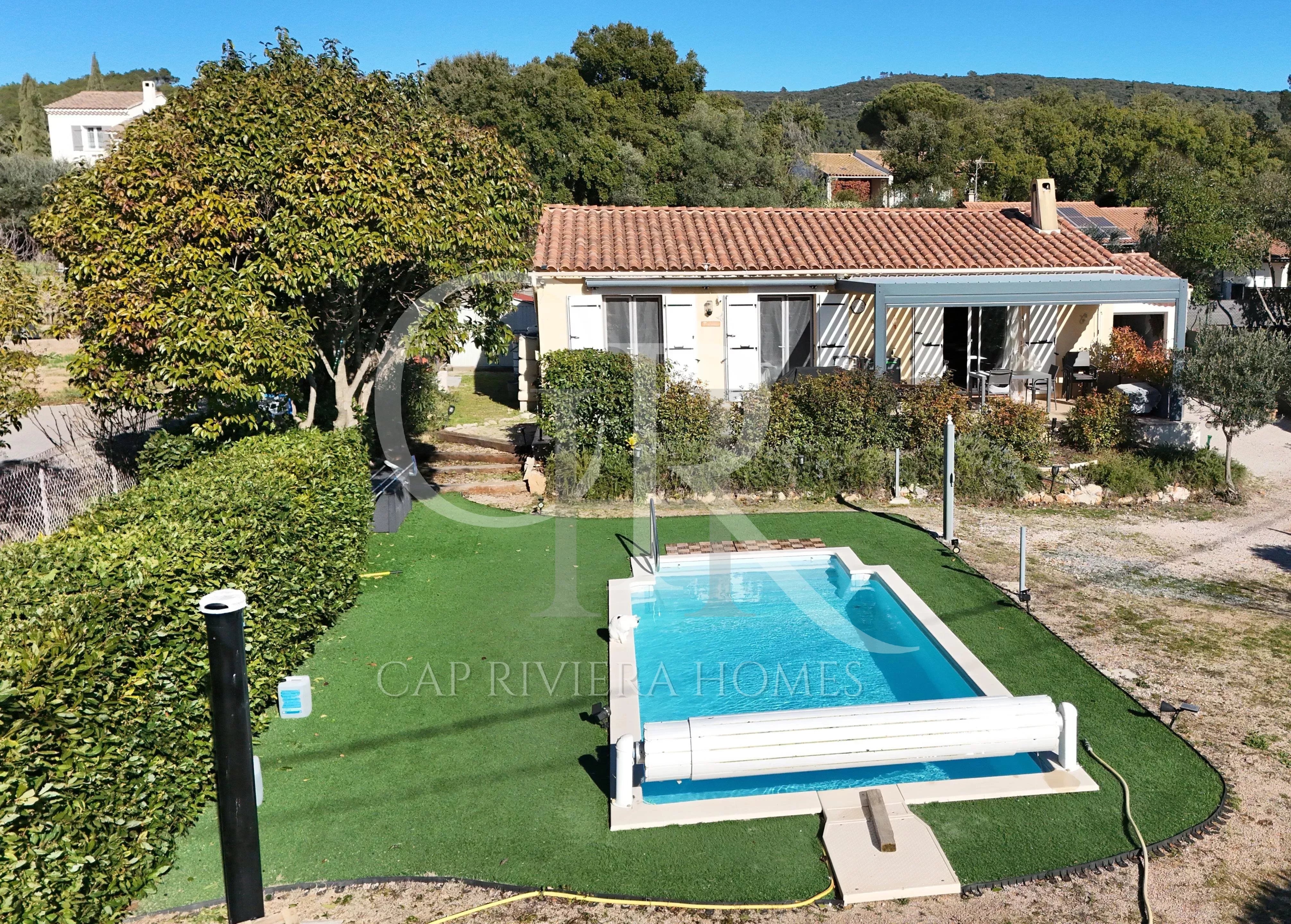Belle maison provençale avec piscine. Composée d'un grand salon avec cuisine équipée, trois chambres, salle de bains, wc indep. buanderie. Garage fermé.